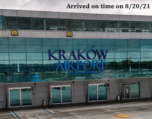 After boarding my flight from AMS we arrived in KRK on time at 16:15. This was an earlier arrival than what I anticipated because I cleared customs in AMS instead of KRK. I had to call the hotel where I’m staying for two nights and asked them if they could send my transfer (shuttle taxi) earlier. They were gracious to send the driver upon my request.